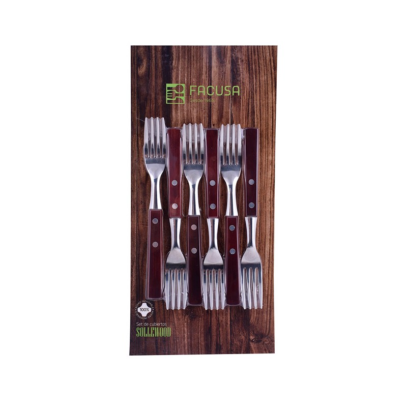 BLISTER X 06 TENEDOR DE MESA MANGO DE MADERA SOLLEWOOD