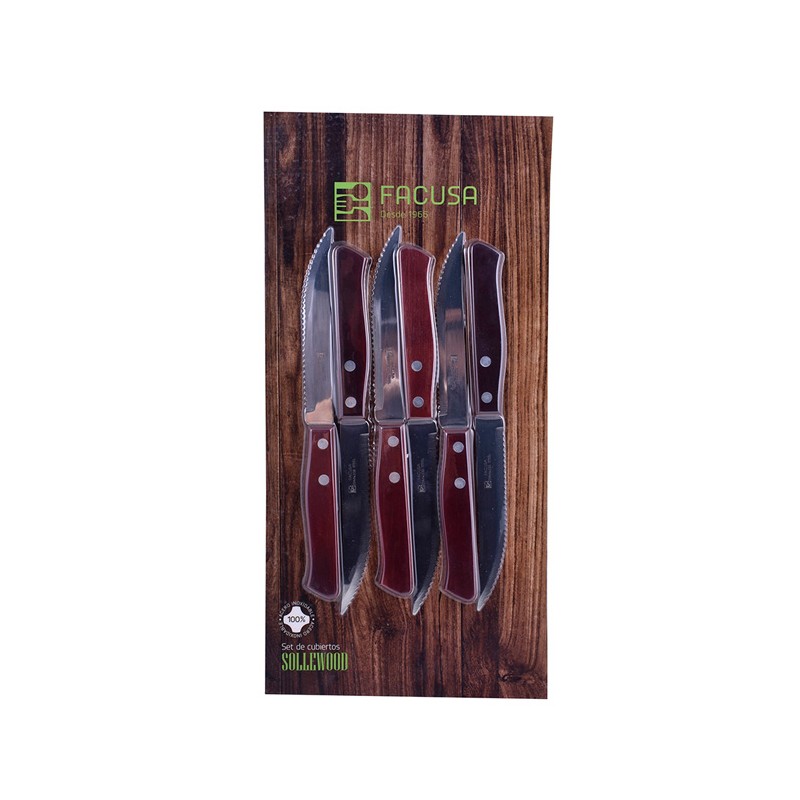 BLISTER X 06 CUCHILLO ASADO MANGO DE MADERA SOLLEWOOD