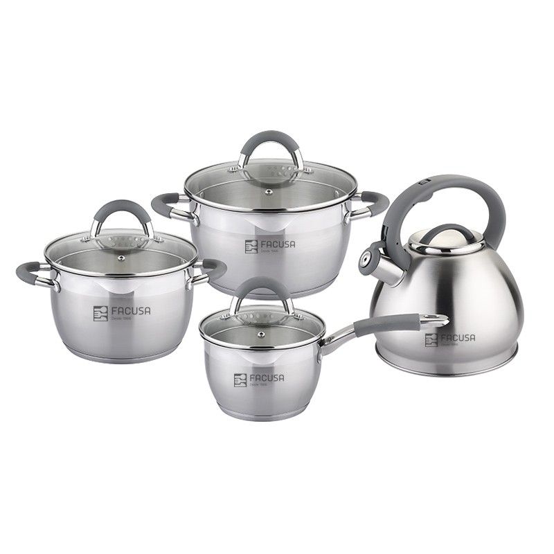 SET DE OLLAS X 08 MISTI TAPA DE VIDRIO MANGO GRIS