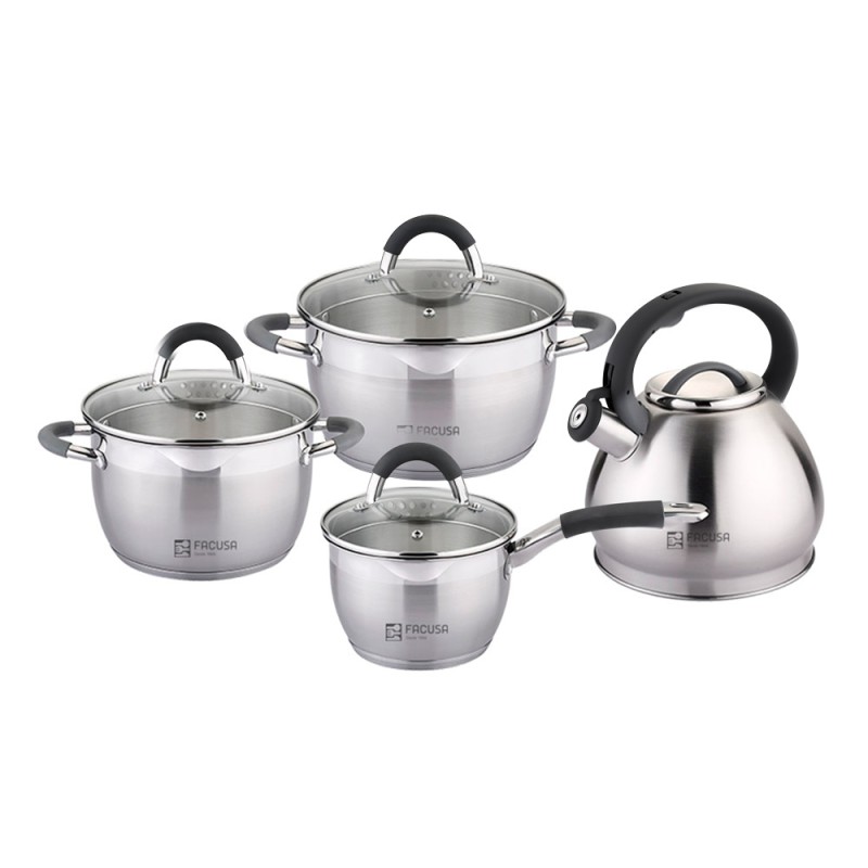 SET DE OLLAS X 08 MISTI TAPA DE VIDRIO MANGO NEGRO