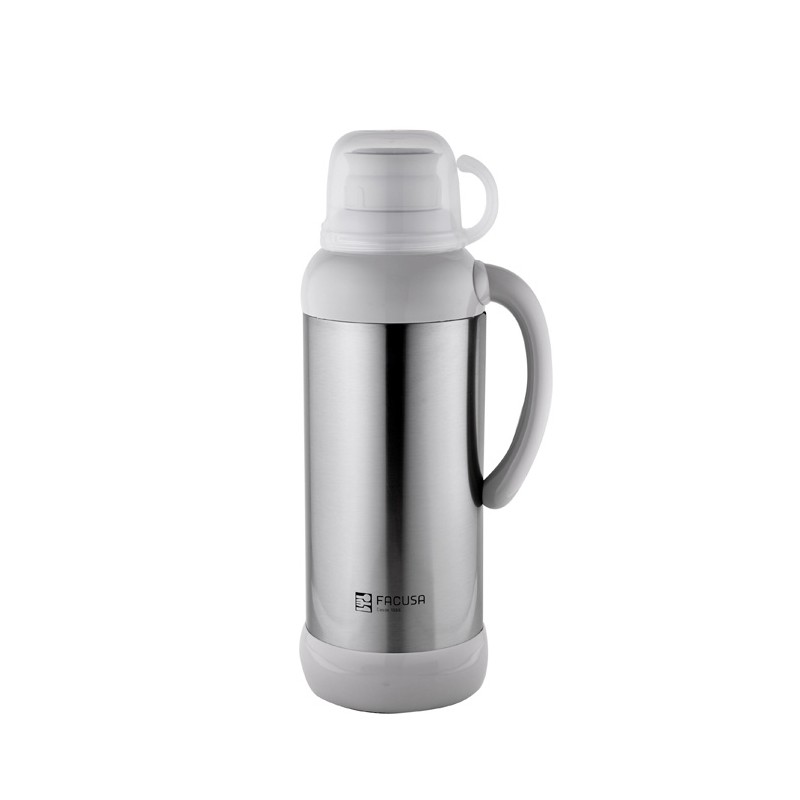 Perfecto para viajes, excursiones y el uso diario, este termo combina resistencia y funcionalidad. Fabricado en acero inoxidable de alta calidad, garantiza una limpieza sencilla y excelente durabilidad. Su mango retráctil y ergonómico facilita el transporte, mientras que la tapa interior con sello de silicona y el mecanismo de cierre seguro evitan derrames accidentales. Además, la tapa exterior recubierta en polipropileno ofrece confort y estilo.